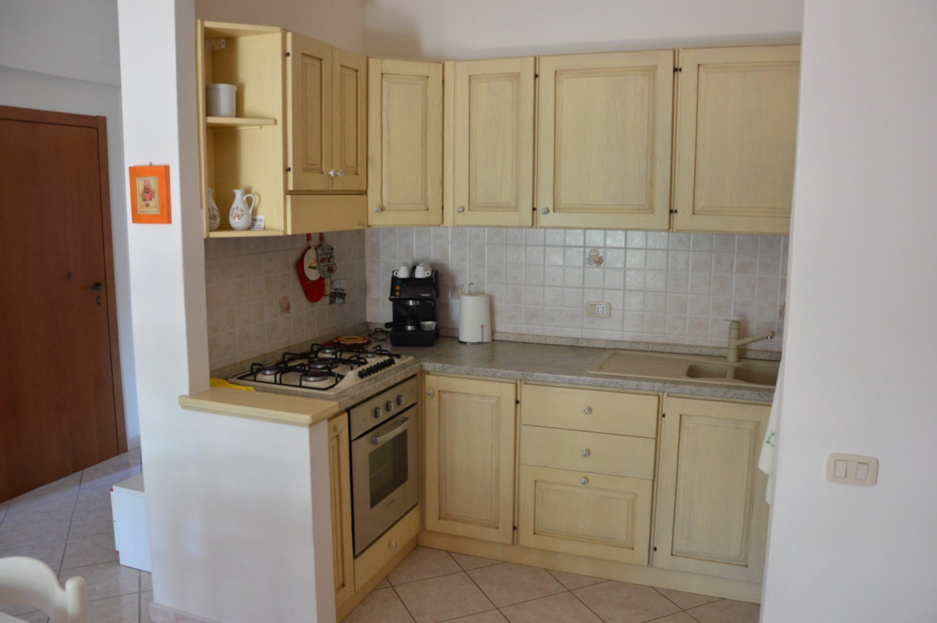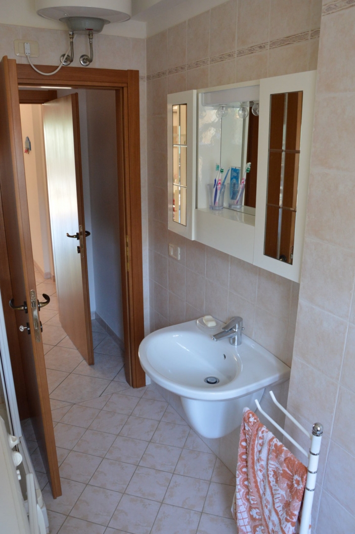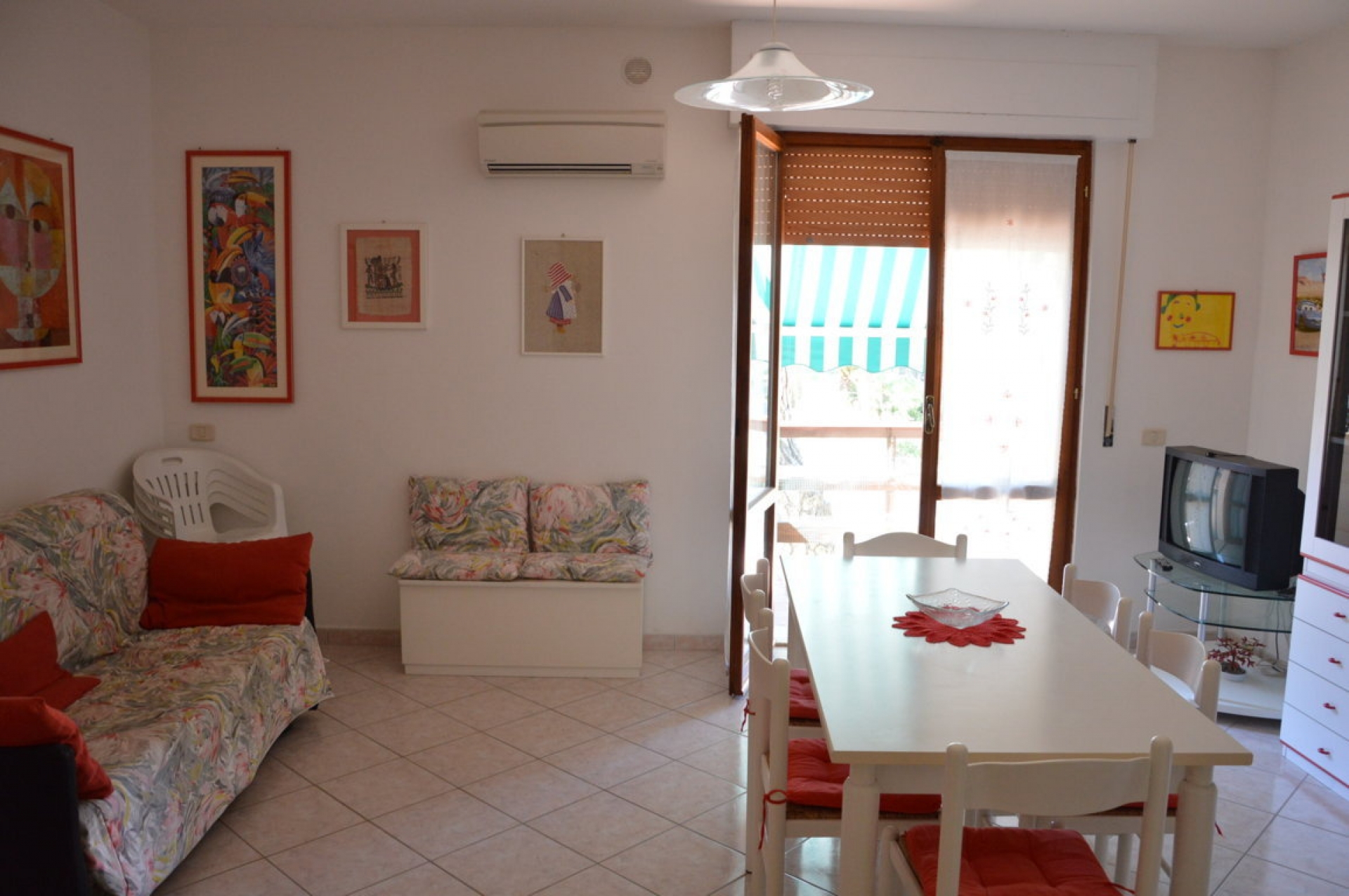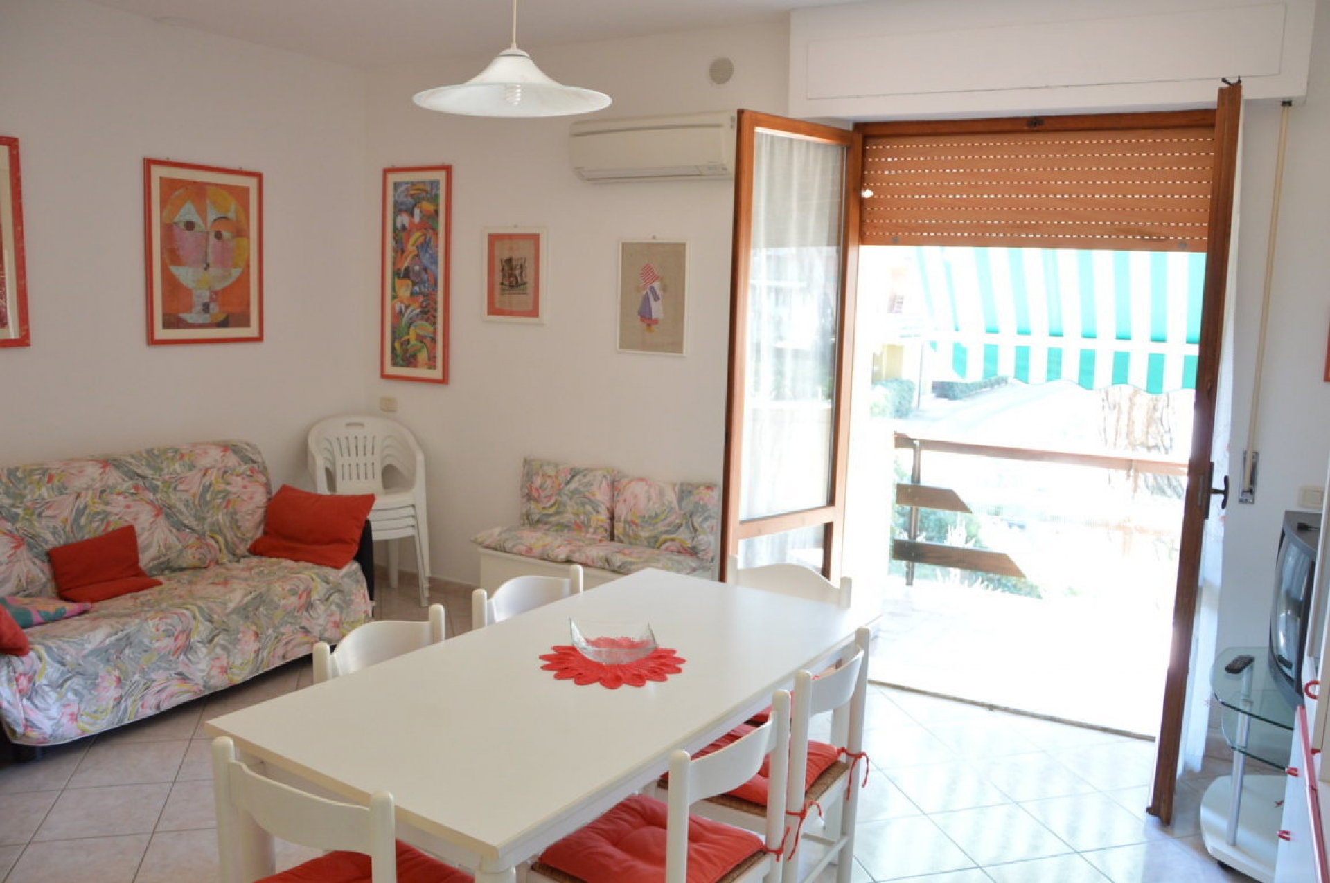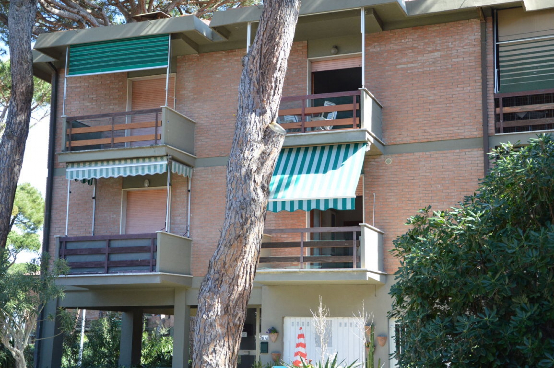 Bilocale posto al 1° piano recentemente ristrutturato, 400 mt. dal mare in pineta ,250 mt. dal centro, composto da: Sala con angolo cottura, camera matrimoniale con terzo letto, bagno con box doccia, terrazzino coperto.\nDotato di: Climatizzato, lavatrice, Tv.
