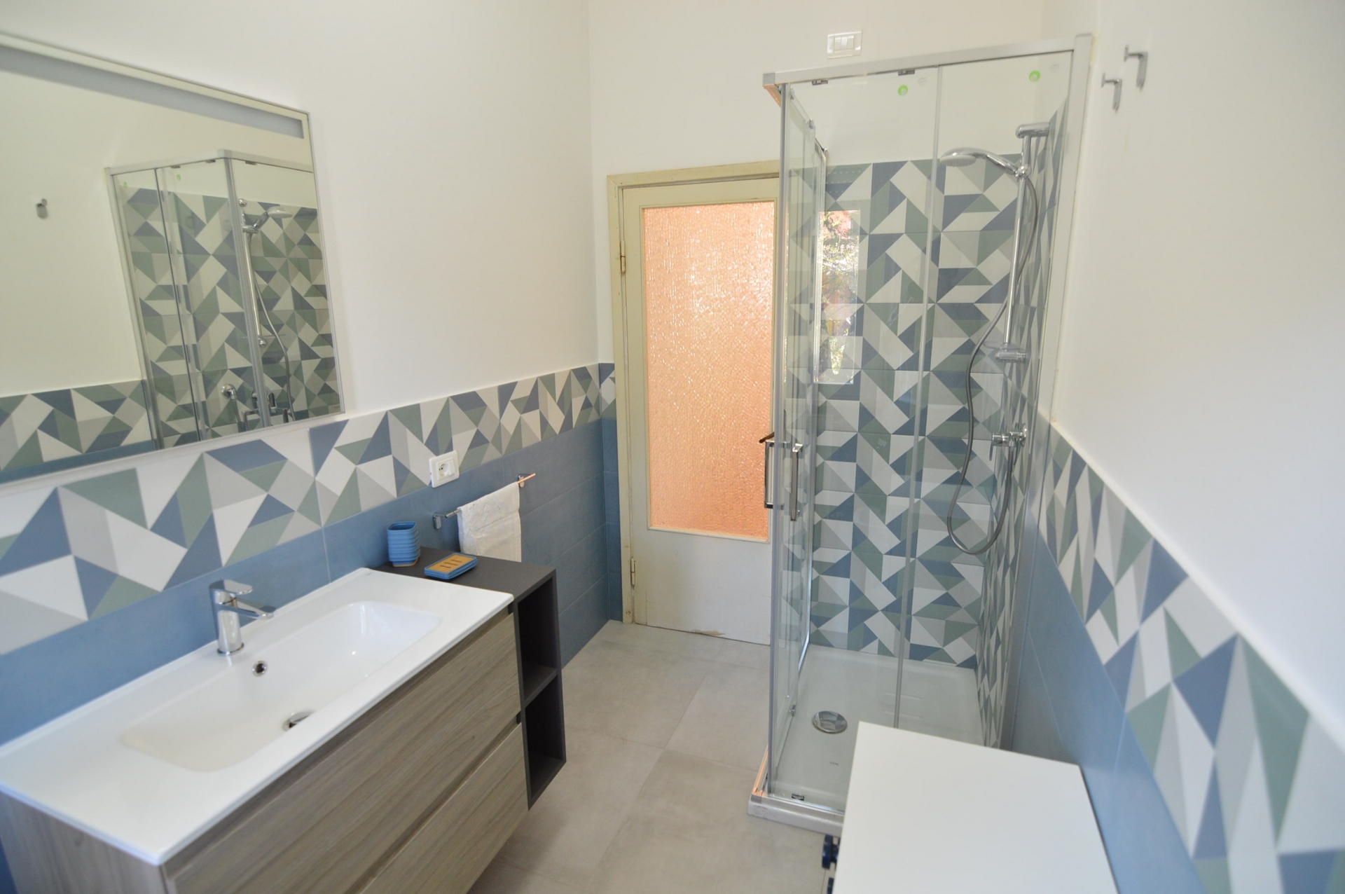 Appartamento posto in zona Rosmarina, al piano rialzato. Ingresso indipendente e giardino privato sul davanti, terrazza per mangiare fuori; internamente composto da: sala, cucina abitabile, due camere matrimoniali,due bagni , cameretta singola, dotato di : tv, lavatrice,lavastoviglie. giardino sul retro privato.