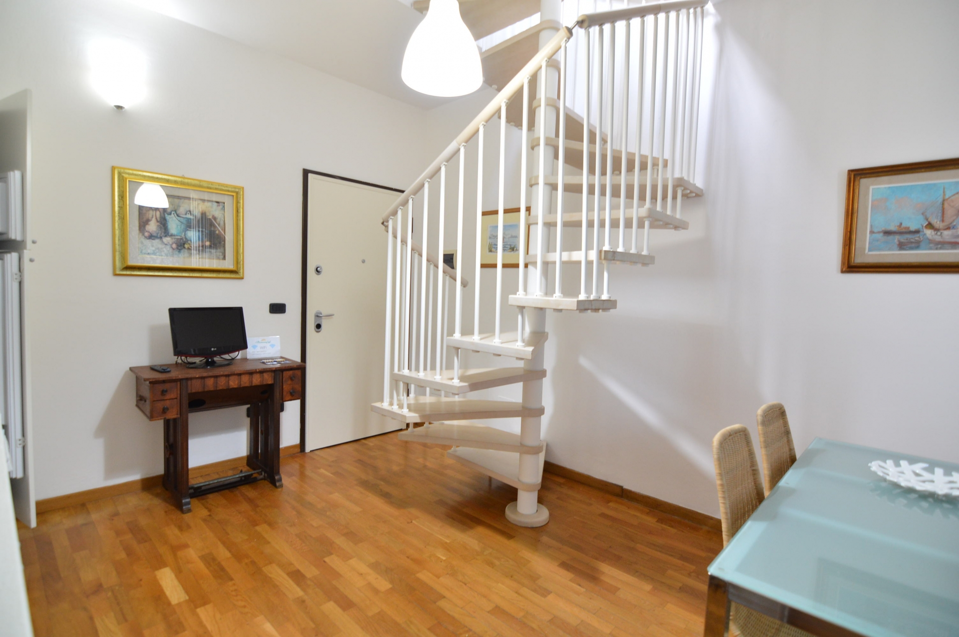 Appartamento posto al piano primo con ingresso condominiale, annesso ampio garage al piano primo sottostrada. L'appartamento è così composto: soggiorno con angolo cottura, 2 camere matrimoniali e bagno con finestra, dalla sala si accede al lastrico solare condominiale, adibito a terrazza scoperta. L'appartamento è completamente ristrutturato dotato di climatizzazione, wifi e caldaia a gas.